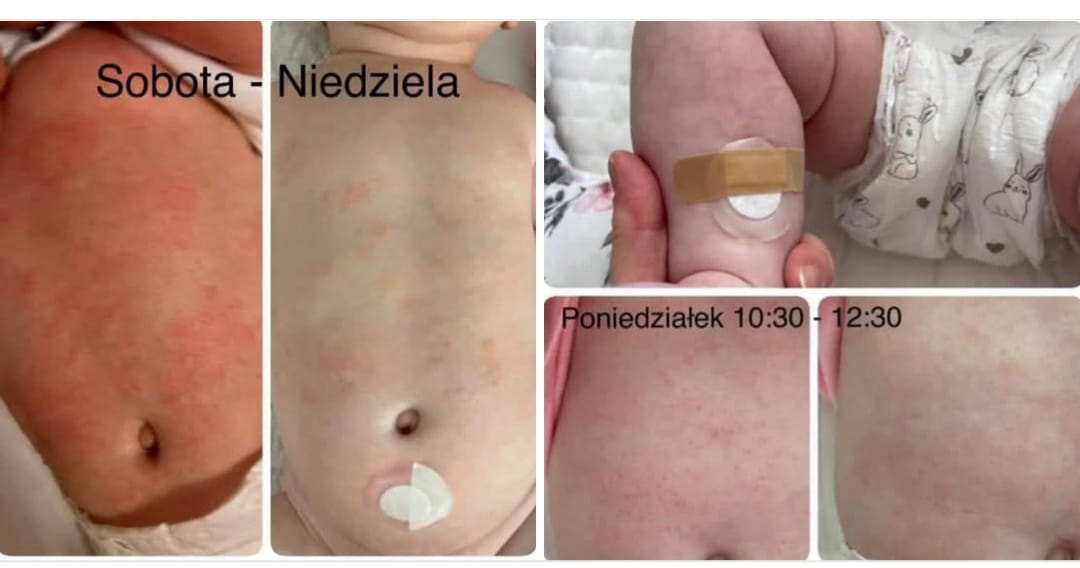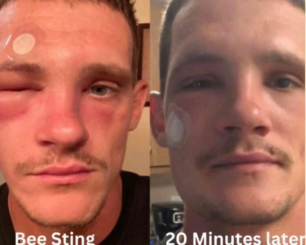 Odczyn alergiczny po ugrzyzieniu pszczoły.